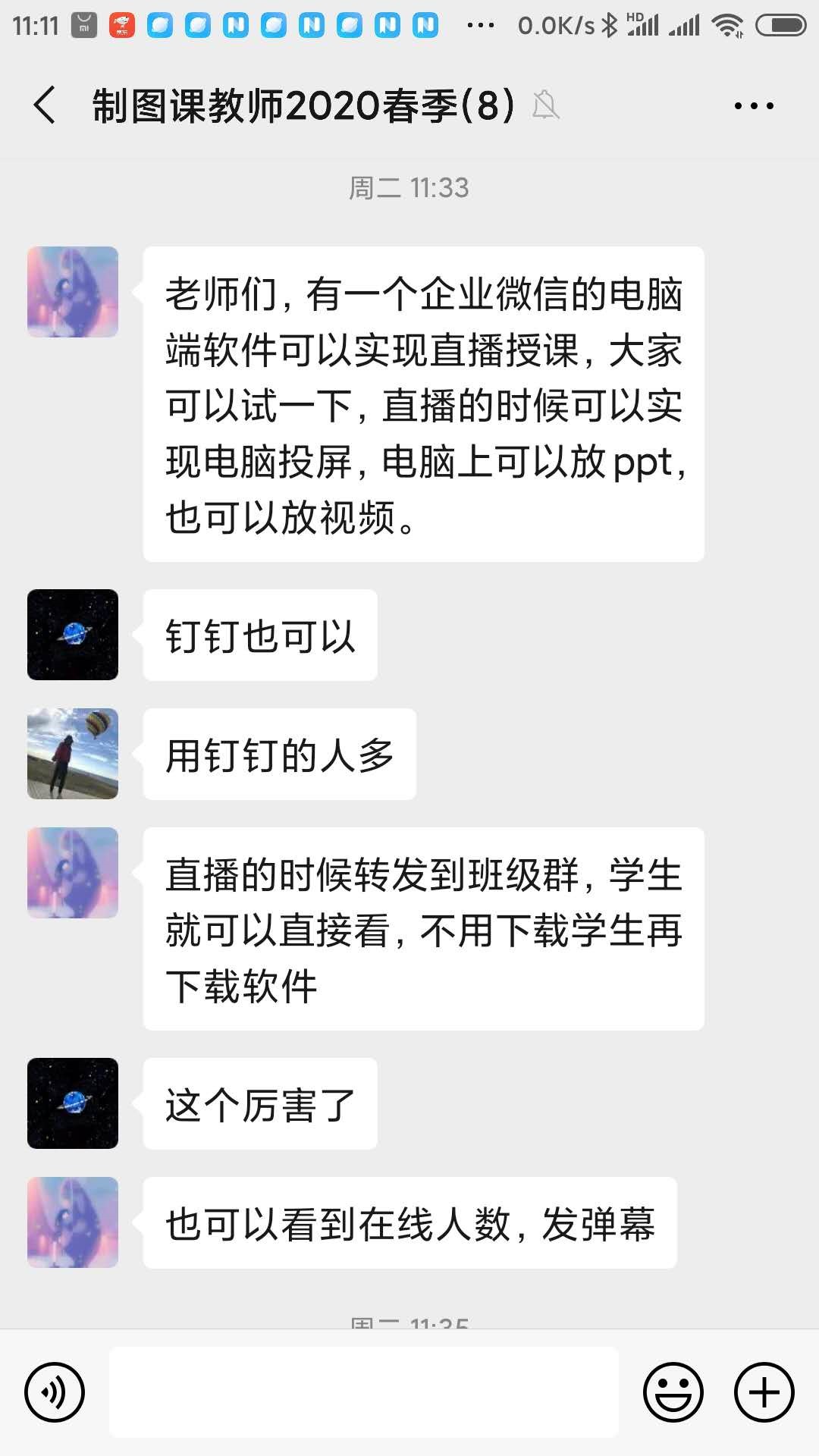 1、周一第一节课平台网页和app出现了较长时间的崩溃,其他时间段及周二到周五部分时间点也出现了卡顿,但任课教师都做了充分准备,启用微信群、QQ群、腾讯会议等备案进行教学活动,并注重了与学生的互动,基本完成了课堂教学任务。