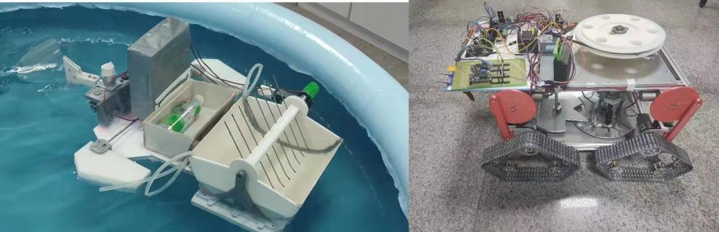 学生王富民、刘逸格、刘渊智、俞德民、白雁泽设计的作品《水面清洁仿生鲸鱼》(指导老师:赵浩成、郜敏)荣获一等奖;