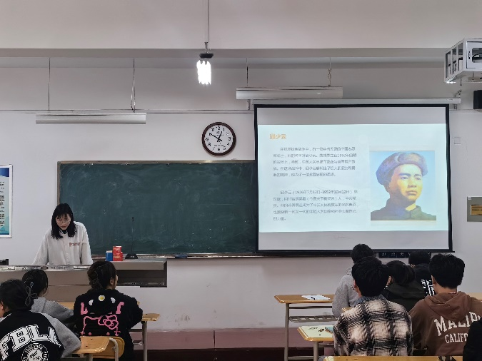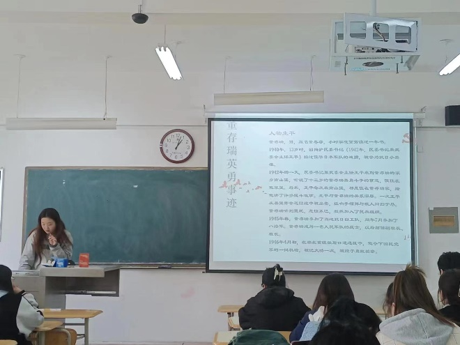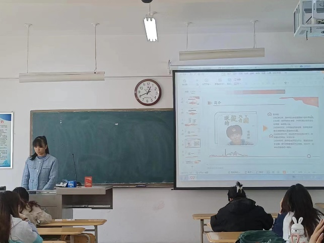 在本次党日活动中,各班党小组代表轮流上台通过PPT、视频、文稿等丰富内容进行演讲演示,追忆了陈祥榕、董存瑞、李子洲、王伟、李大钊、邱少云、刘胡兰、赵一曼、杨靖宇、孟起安、黄继光等十数位英雄先烈的事迹,深情寄托了哀思,表达了崇敬之情。