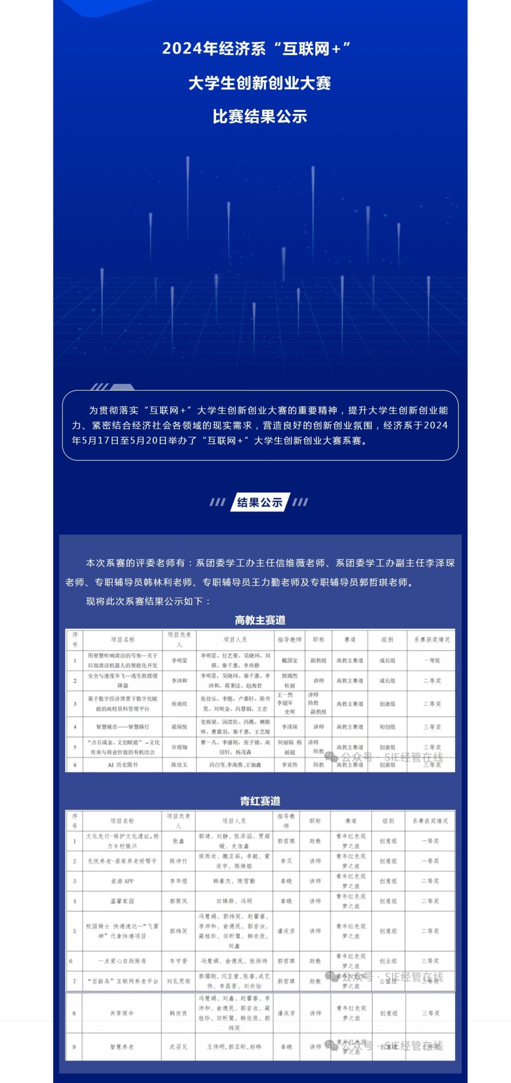 2024年经济系“互联网+”大学生创新创业大赛比赛结果公示
