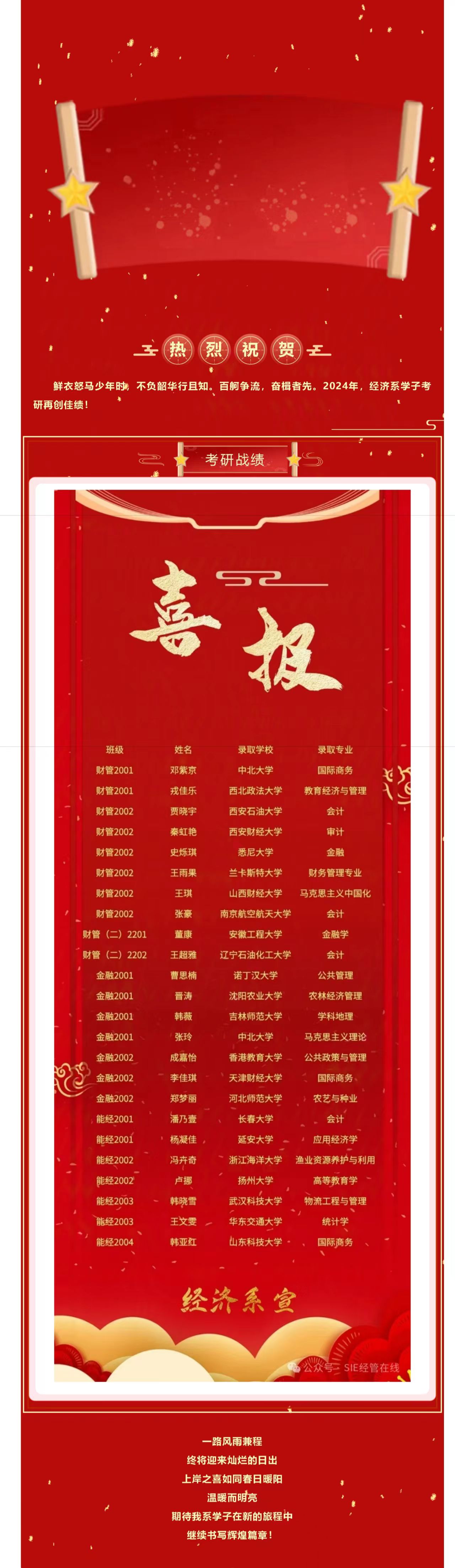 追逐梦想,扬帆远航——经济系2024年考研再创佳绩