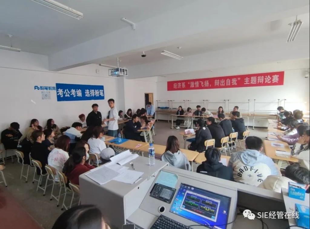 唇枪舌战展雄才,妙语连珠呈风流。经济系以“激情飞扬,辩出自我”为主题的辩论赛复赛于3月30日晚7:00在2313教室顺利举行,辩手们从初赛辩论时的青涩,到现如今举手投足间的从容,他们在这场辩论的盛宴里展露了青春的锋芒,参加此次辩论赛复赛的四支队伍在本次比赛中展开激烈角逐,让我们一起来享受这场视听盛宴吧。