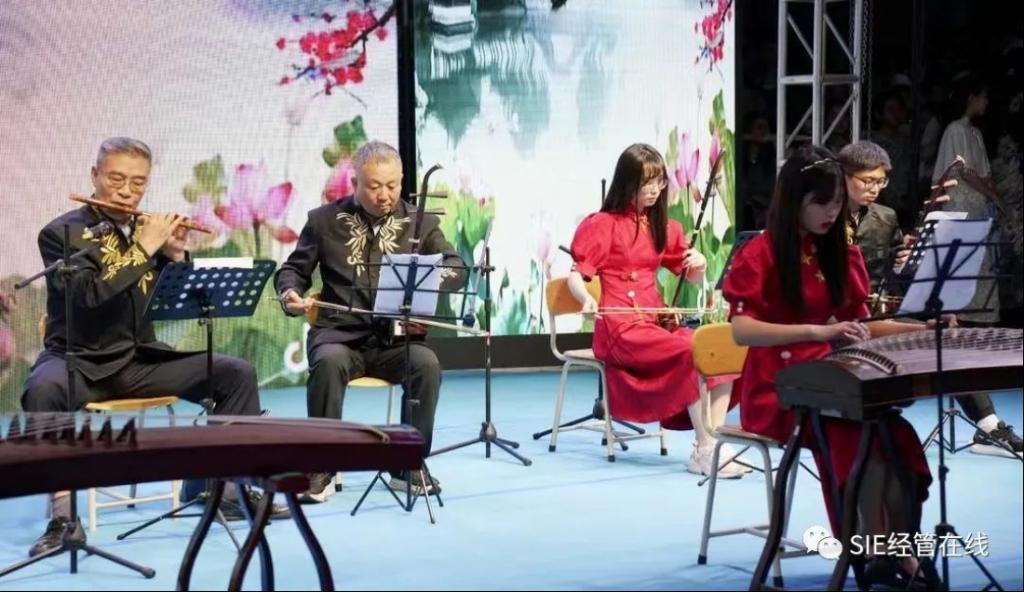 表演者们身着古风服装,迈着小碎步,把女性的端庄,优雅表现的淋漓尽致。