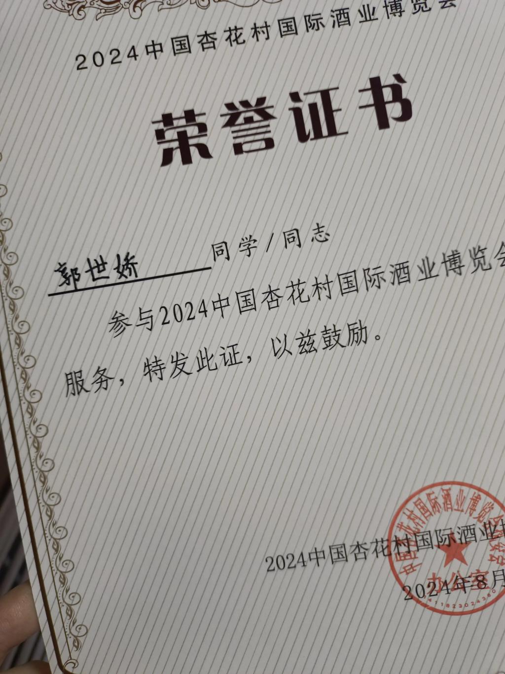 财管2301班郭世娇为中国杏花村国际酒业博览会的开幕做准备工作,监督搭建公司进行搭建,参展商提交参展资料,书画展的开展以及开幕式的开展准备工作,深入了解到了各地的酒业文化,提高沟通能力,拓宽视野,增强了自信。
