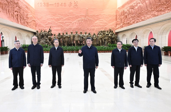 2022年10月27日,习近平在延安革命纪念馆参观《伟大历程——中共中央在延安十三年历史陈列》结束时发表重要讲话。新华社记者 燕雁 摄