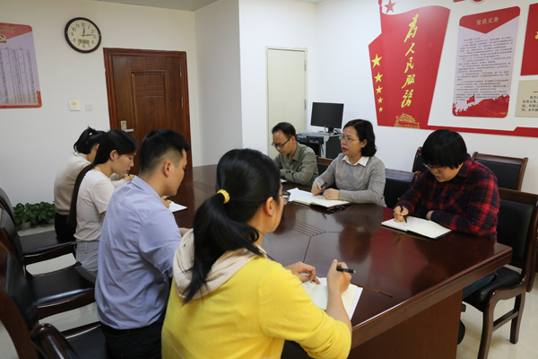 图为广西壮族自治区玉林市纪委监委案件审理室工作人员围绕栗利九案进行讨论。 胡雄波 摄