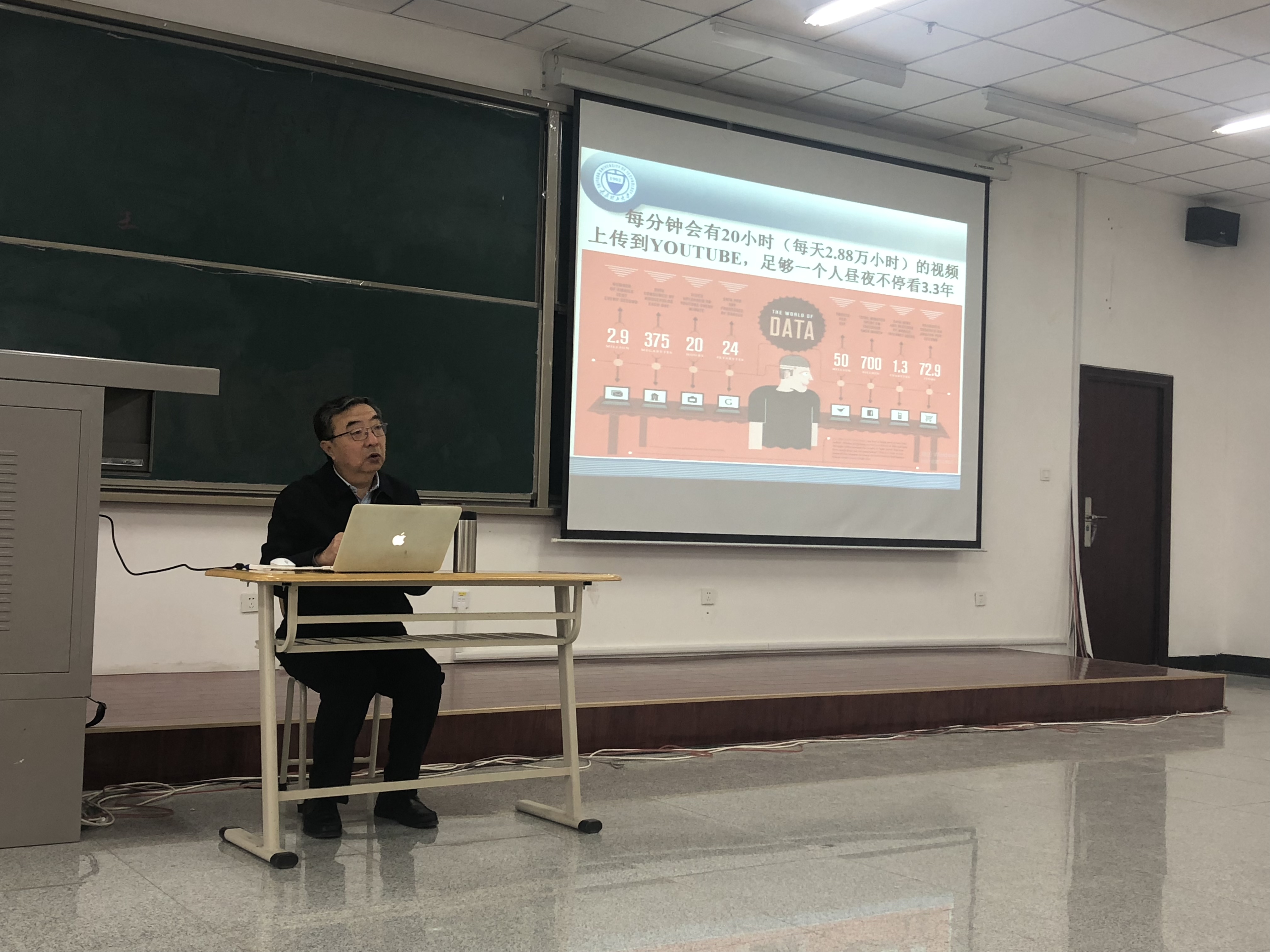 陈教授的讲座内容紧凑而丰富,深入浅出地讲解了大数据基本概念、大数据要素、大数据的时代背景、大数据带来的思维变革、大数据的应用价值、大数据的发展趋势和面临的挑战几个方面。报告期间座无虚席,精彩纷呈的讲座使在场的每一位同学沉浸其中。