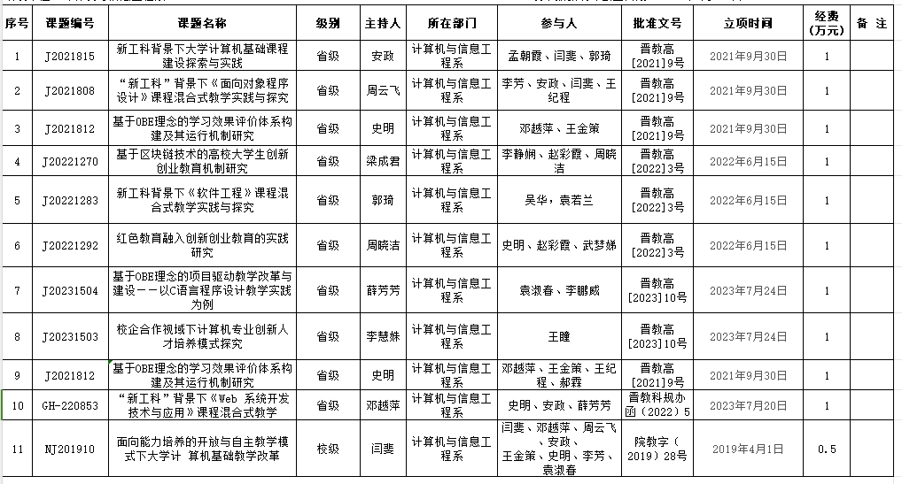 教学改革立项项目一览