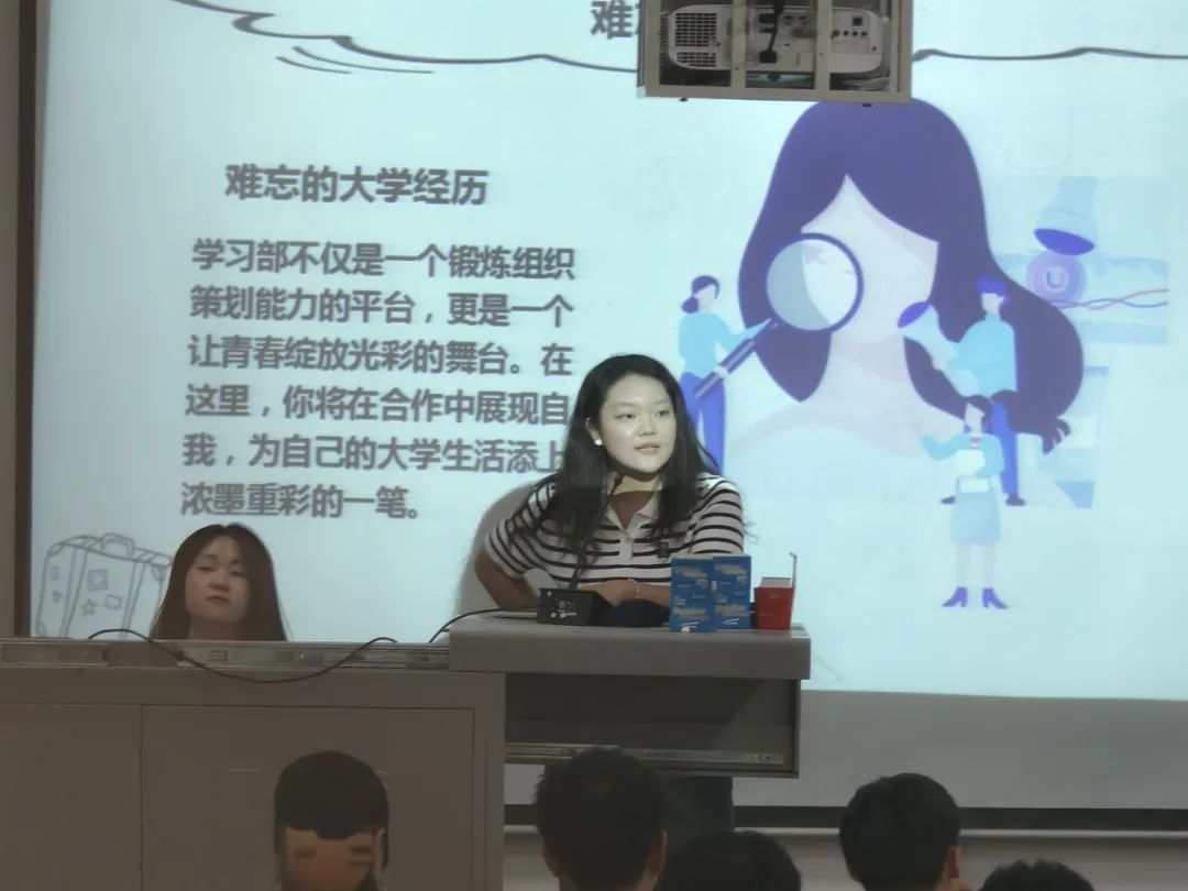 为了使新生们更深入地了解学生会的运作机制,青志部、学习部、新媒体部、体育部、文仪部等多个部门的负责人依次上台发言,详细介绍了各自的职能范围、工作重点以及团队文化。例如,体育部着重于策划和执行各类文艺体育活动,学习部致力于促进学术交流和学习资源的共享,新媒体部关注校园的日常活动并予以记录,同时对外宣传沟通和形象建设。