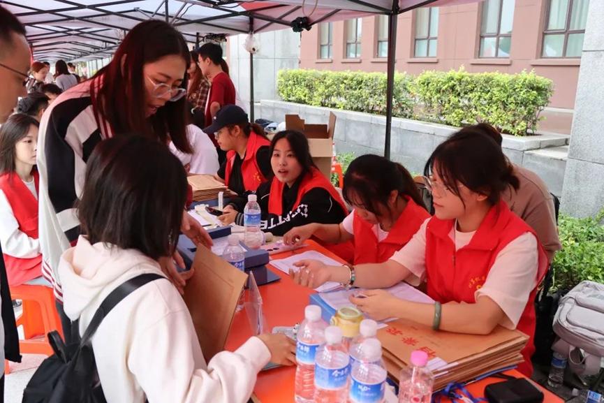 迎新现场井然有序,我系志愿者积极认真的投入到各项工作中。新生顺利完成现场确认报道、提交个人档案、领取校园卡和日用品等环节.