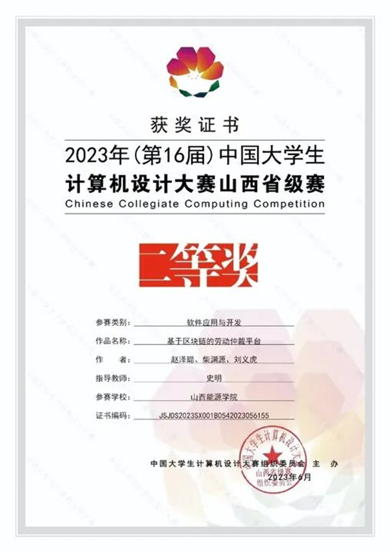 “在第四届全国高校计算机能力挑战赛山西选拔赛暨2022年山西省大学生计算机能力挑战赛”中荣获山西省省赛二等奖及以上的同学:白志武、白琪利、李博文、侯蜀祺、赵威凤、李子钒等。