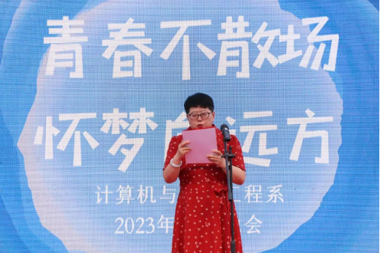 邓主任首先向即将完成学业、告别大学时光的学子们表示祝贺并寄予美好的祝愿,同时向悉心培养同学们的教师和亲友致以最崇高的敬意。她回顾了计算机系的发展建设成就,赞扬同学们在过去四年里的刻苦学习和奋发努力所取得的优异表现。
