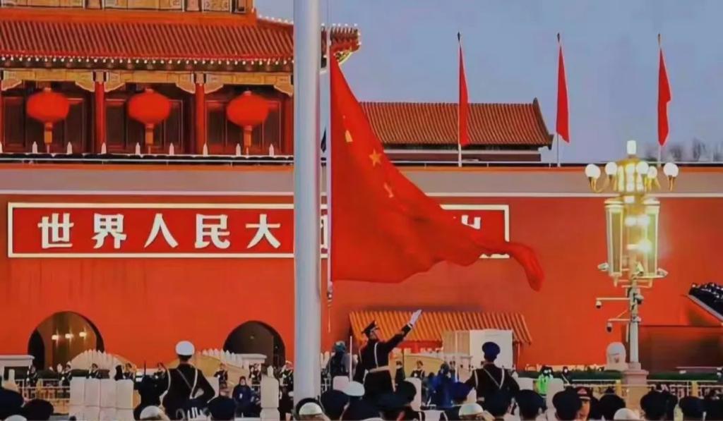 上午7时整,升旗仪式正式开始,国旗护卫队迈着整齐有力的步伐,护送国旗行进至升旗台上。在嘹亮激昂的国歌声中,鲜艳的五星红旗冉冉升起,全体人员面向国旗行注目礼,一起为祖国献上生日祝福,共同祝愿伟大的祖国更加繁荣昌盛。