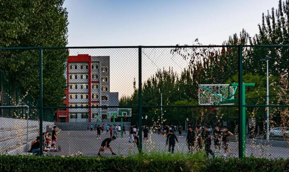 操场东有篮球场地,六个全场场地可供同学们挥洒汗水!并且在西门附近还有小篮球场,共有两个全场场地。