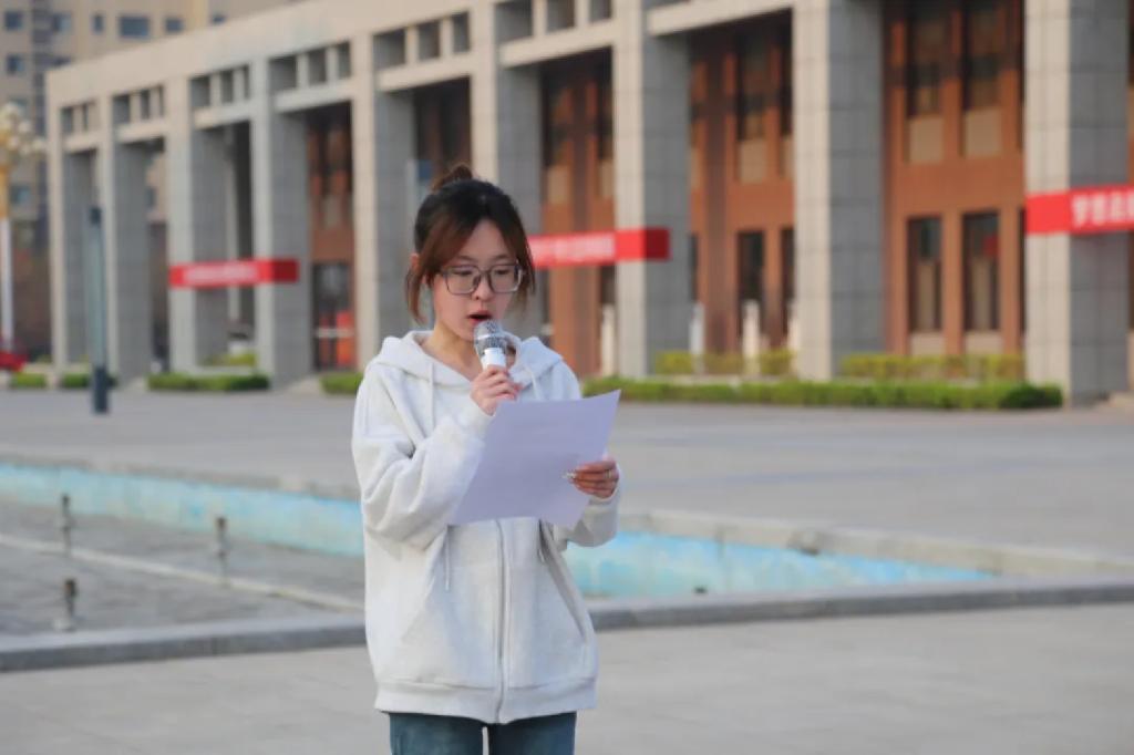我校计算机与信息工程系信管B2202班的张佳莉在国旗下做了发言。