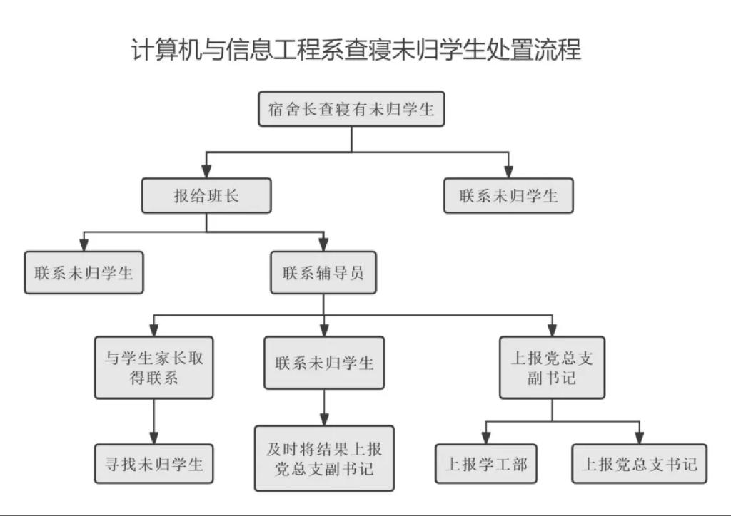 近日同学们课外活动和外出行程增多,请同学们注意人身安全和财产安全(关闭免密支付和设置手机锁屏),树立正确交友观,查寝后不再外出,遇到意外事件要第一时间联系辅导员。我系特制定《学生发生意外事故处置流程》《查寝未归学生处置流程》供同学们参考。