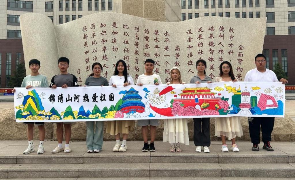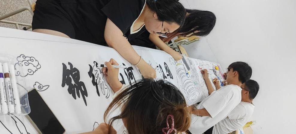 这幅画卷以“锦绣山河,热爱祖国”为主题,画面上展现了祖国壮丽的山河景色,既是对祖国美景的赞美,也寄托了同学们对未来美好生活的向往。通过绘制这幅长卷,同学们不仅展示了自己的艺术才华和创造力,还在绘画过程中进行了深入的自我探索和情感表达。