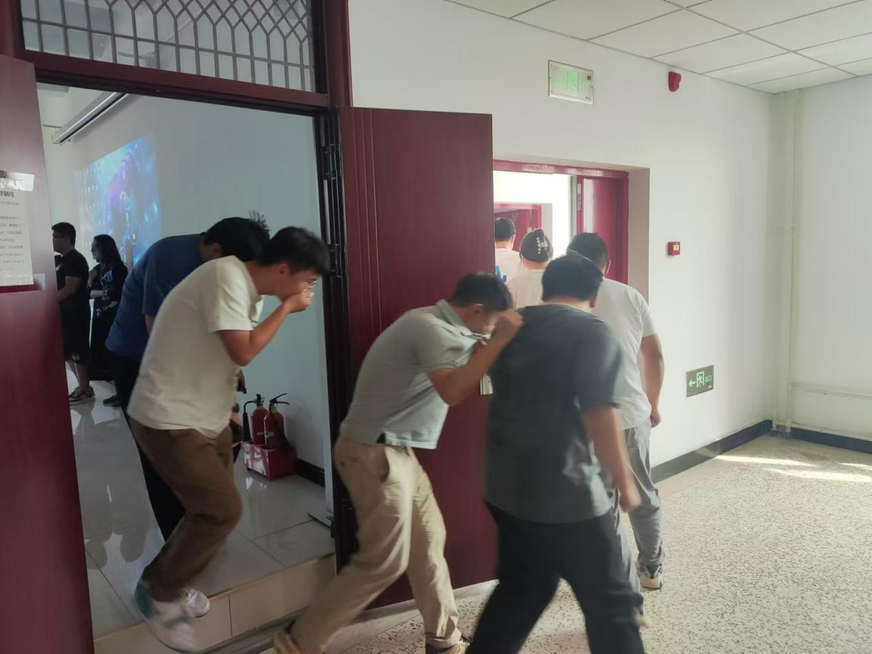 为进一步强化实验室安全教育,增强学生安全意识,提升学生应急逃生能力,我系于9月13日上午在实践楼八层区块链原理实验室开展实验室消防应急演练。本次活动由党总支书记邓越萍、系主任史明、副主任周云飞、教师范世铭、李超军、任嘉欣、薛芳芳、雒瑞杰以及保卫处王乔、张永生共同组织。