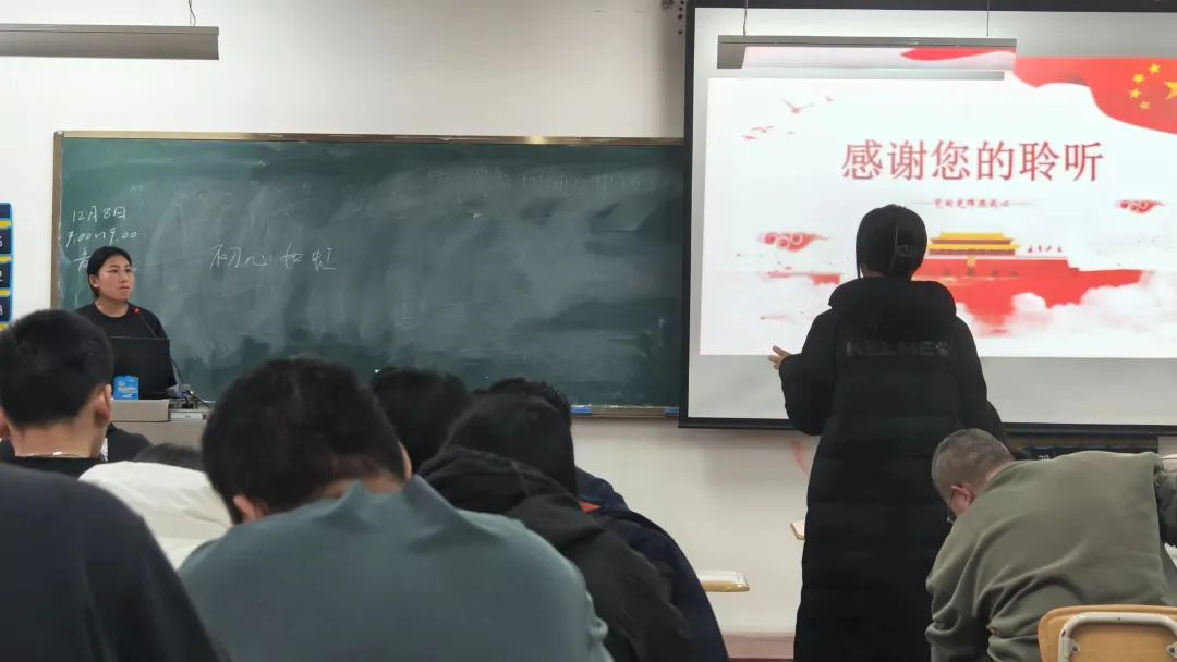 学生党员靳席同同志表示:希望同学们将今天所学知识运用到自身的学习和未来的工作中,不断增强自身的综合素质,为国家的繁荣和发展贡献自己的力量。