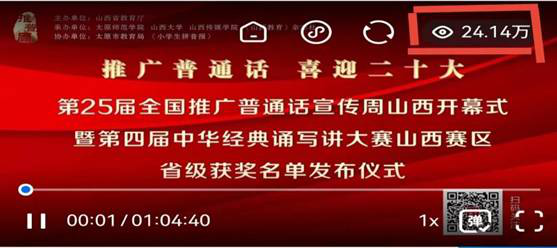 根据通知要求,9月12日在线上举办的第25届推普周山西开幕式暨第四届中华经典诵写讲大赛山西赛区获奖名单发布仪式为本次推普周重点活动,我校积极响应,提前发布通知组织师生观看该活动,并做好活动记录与总结。