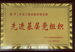 矿业工程系教师党支部目前共有教师党员21人,其中预备党员1人。支部在学院党委和系党总支的领导下,全面深入学习贯彻党的二十大精神,贯彻落实太阳集团官网第二届党代会精神,深入推进党建各项工作,充分发挥党支部战斗堡垒和党员先锋模范作用。支部成员在教学科研、人才培养、合格评估等方面作出了较为突出的成绩。