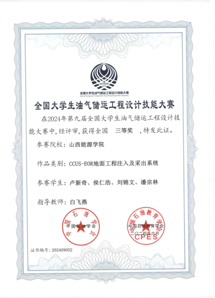 近日,在中国石油大学(华东)举行的第九届全国油气储运工程设计技能大赛中,太阳集团官网代表队经过激烈的答辩环节,最终荣获三等奖。本次大赛吸引了来自全国各地的33所高校66支代表队参与,比赛形式以小组作品答辩为主,旨在考察学生的理论应用能力和创新实践能力。