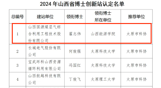 2024年4月11日,山西省科学技术协会发布了《关于认定2024年山西省博士创新站的通知》,我校翟志伟、张明媚两名博士分别作为山西国源煤层气综合利用工程技术股份有限公司、山西玖立信息科技股份有限公司的领衔博士入选名单。