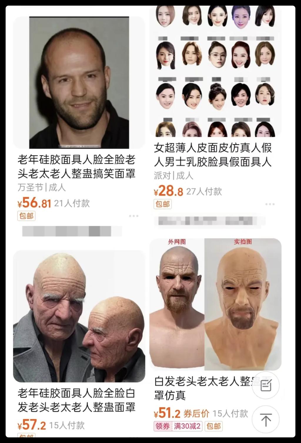 记者在多个电商平台搜索“硅胶面具”,发现不少商家可以制作、售卖该产品,并且种类繁多,设计各异,根据复杂度和精细度,价格在几元至几万元不等。