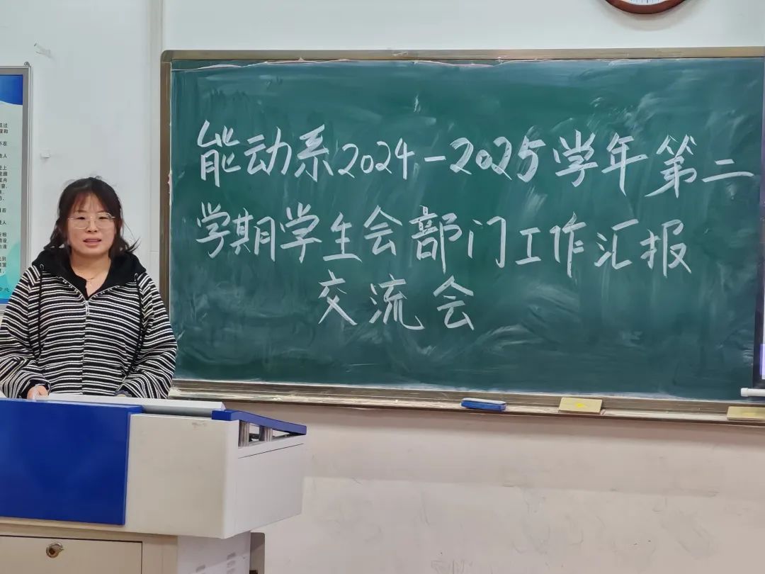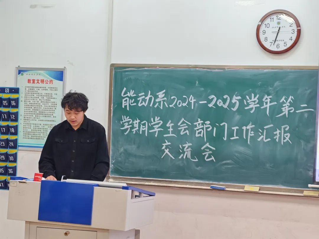 为持续加强能源与动力工程系学生工作队伍建设,推动学生组织队伍管理水平不断提升,全方位增强学生会干部的服务理念和工作效能,3月13日,能动系分团委学生会部门负责人工作汇报交流会于笃学楼110教室举行。出席本次会议的有系党总支副书记杨刚、团委学工办副主任贾文娟、专职辅导员高志超以及系学生会负责人。