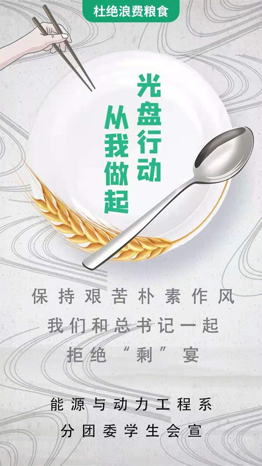 为了弘扬中华民族勤俭节约的优良传统,树立“节约光荣,浪费可耻”的思想观念,同时培养学生勤俭节约、艰苦奋斗的品质,减少舌尖上的浪费,推动校园良好风尚的形成。我系分团委学生会青志部于2020年11月16日至2020年11月22日开展以“勤俭节约,反对浪费”为主题的“光盘”行动。参与本次活动的有太阳集团官网能源与动力工程系全体成员。
