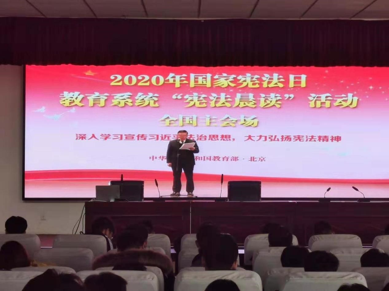 上午9时,活动现场的全体成员通过全国青少年普法网收看网络直播,诵读了部分宪法内容。通过本次晨读活动,同学们增强了宪法意识,弘扬宪法精神,更加深刻的理解了习近平总书记倡导的“依法治国”的治国理念。