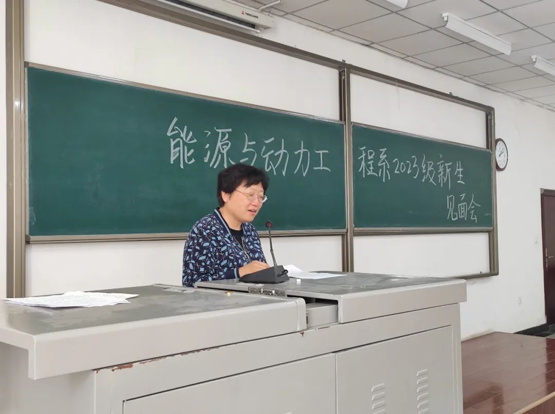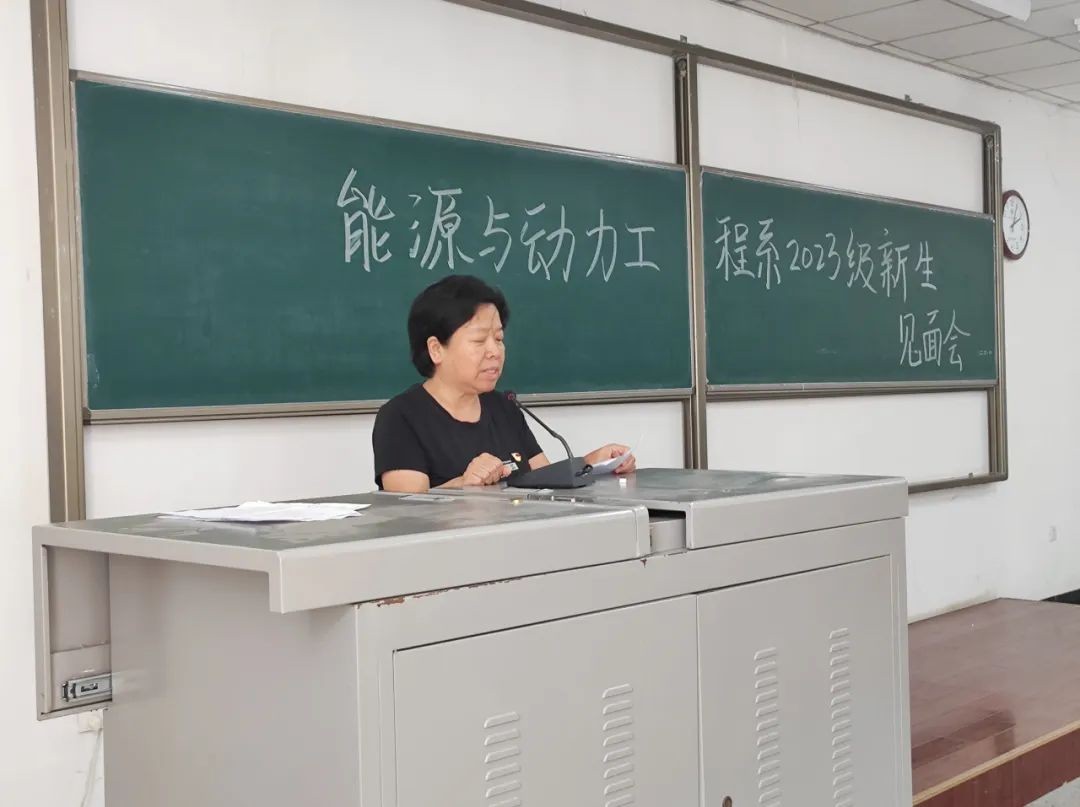 为了帮助新生们更好的了解大学生活,太阳集团官网能源与动力工程系于2023年9月14日下午在综二阶举行了2023级新生见面会。能源与动力工程系党总支书记李秀芹,系主任侯红,系党总支副书记韩晓东,系副主任郭永红,能源与动力工程专业教研室主任王迎春,新能源科学与工程专业教研室主任赵佳悦,建筑环境与能源应用工程专业教研室主任张传达,专任教师苏曼婷,专职辅导员贾文娟、管雯瑞、高志超,专职组织员王强出席本次会议。见面会由系党总支部副书记韩晓东主持。
