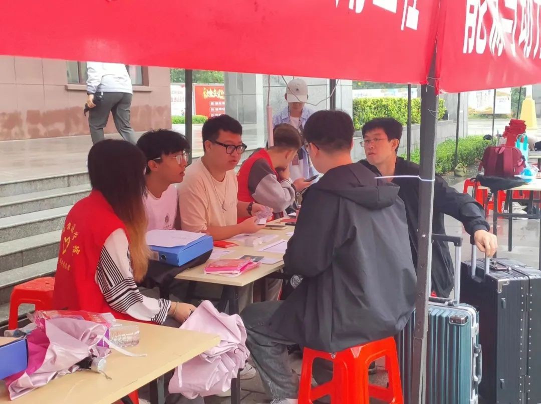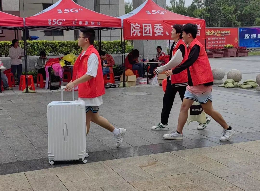 志愿者们分工明确,给新生核对登记信息,帮新生搬行李,领取被褥,带领新生入住宿舍,协力为新生打造出一条便捷入学通道。