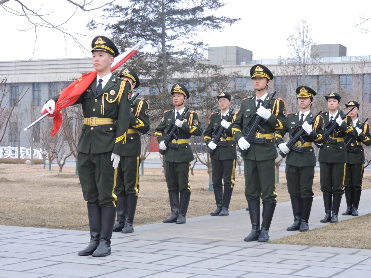 国旗护卫队的旗手们迈着整齐有力的步伐,来到升旗台下。随着“敬礼”的口令发出,擎旗手振臂一挥,将鲜艳的五星红旗向空中一抛,划出一道优美的弧线。展开的五星红旗随风飘扬,在全体师生庄重的注目礼下,如一点红色的太阳冉冉升起。