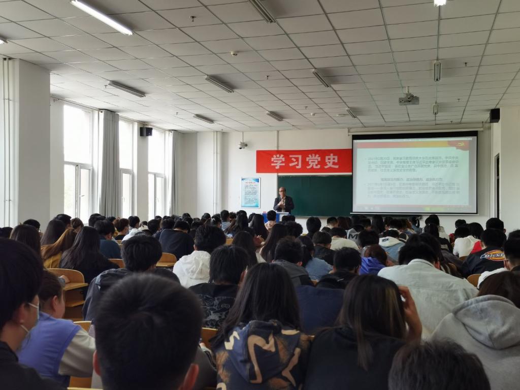 2021年4月20日16:00,能源与动力工程系于综合楼106教室开展第四次党史学习教育专题会议—学习党史,不忘初心。我系荣幸邀请到思政部张东安教授向大家讲授中国共产党的发展历史。会议内容分为三个部分。首先,张教授向我们讲解了“为什么要学习党史”:中国共产党能够取得如此成就就是因为我们没有忘记初心。第二部分张教授为我们介绍了党史的简约论述,通过对“党史主要由一条主线和两大历史性飞跃组成”以及“2013年习近平论述的三件大事”的解释,使大家更加深刻的了解到中国共产党所完成的伟大成就。第三部分张教授带领大家重温了中国共产党的历史进程,共计为五个阶段:中国共产党的创立及早年的革命活动时期、第一次国内革命战争时期、第二次国内革命战争时期、抗日战争时期、第三次国内革命战争时期。这使在场所有人员都感叹如今美好生活的来之不易,同时更加坚定了永远跟随中国共产党前进的决心。