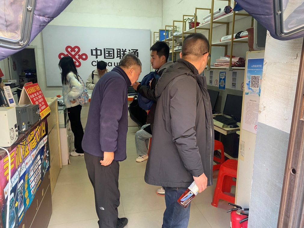 对学院超市、联通营业厅和理发店进行安全隐患排查。主要对灭火器是否合格、人员是否掌握使用情况,以及消防通道等重点部位进行详细检查。