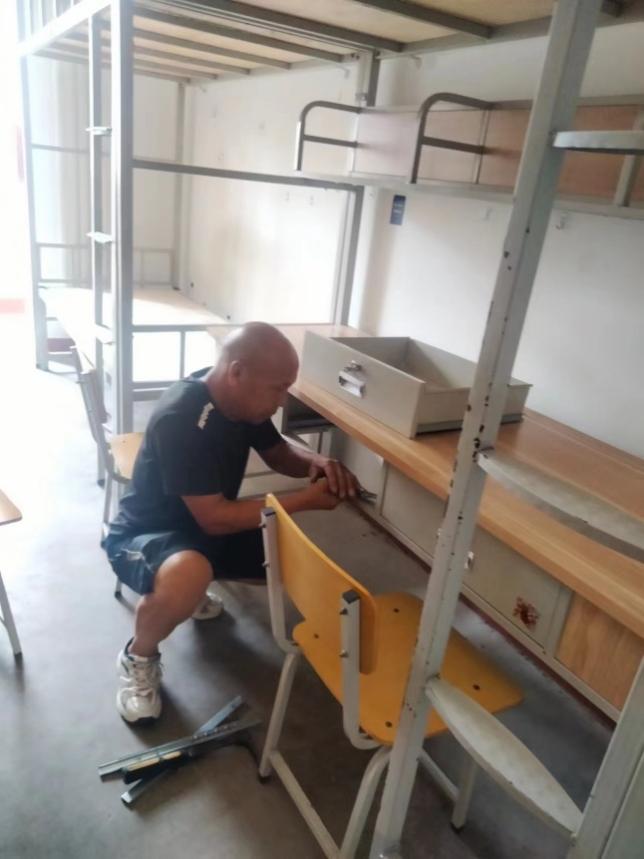 11.学生公寓在暑假期间对所有公寓的床、门、柜进行了维护修理。配合网管维修师傅逐个检查更新了1525间宿舍的网线。物业公司对所管辖区域开展了维护修理和卫生清洁工作,对粉刷过的学生宿舍进行了大清扫。完成新生公寓用品采购工作。