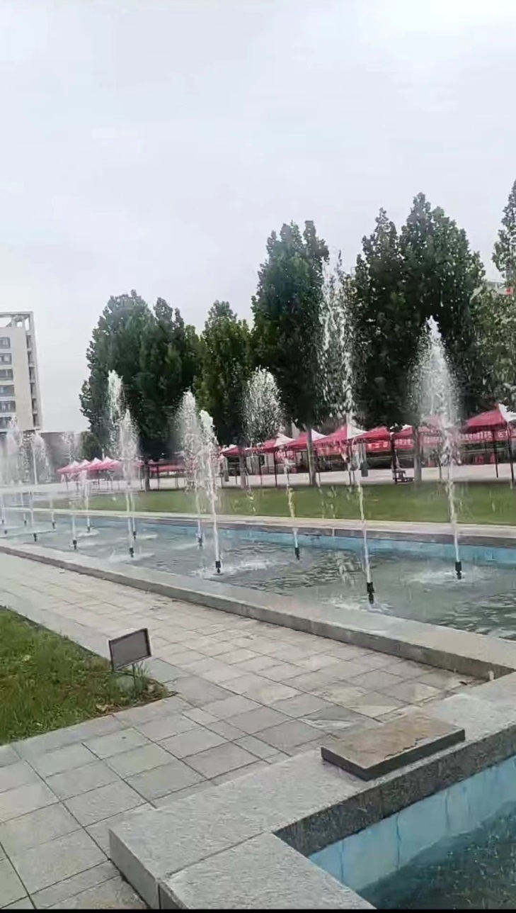 3.检修喷泉电路、喷泉放水和调试喷泉水泵设备。室外布置电缆,加装插座,为迎新帐篷提供电源。