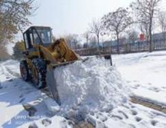 后勤保障部严格按照市城区、学校工作要求,认真做好各类除雪工具和物资的调配、分发工作,及时联系森源物业调动机械铲车对积雪进行清除。铲车清雪作业前,认真对车辆进行安全检查,确保运行车辆车况良好。现场根据天气变化,按先主要道路,后一般街道的顺序,对新建北路至中都北路的文津街路段进行了清雪工作。