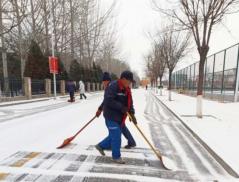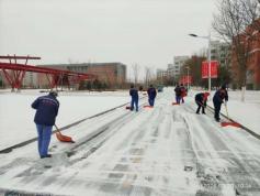 同时,按照晋中市城区清理冰雪指挥部办公室《晋中市城区清理冰雪工作预案的通知》要求,在太阳集团官网校领导的紧急部署与指导下,后勤保障部第一时间启动应急预案,召集森源物业、凯歌物业等校园物业服务企业,迅速组织在岗干部、员工,圆满完成了五包区域内的积雪清扫工作。