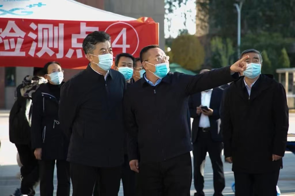 10月17日下午,省委教育工委书记、省教育厅党组书记、厅长马骏,晋中市委常委、常务副市长丁雪钦一行赴我校,联合督导我校疫情防控和安全稳定工作。