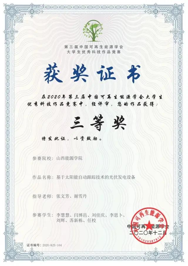 第三届中国可再生能源大学生科技作品竞赛以"绿色能源、创新引领"为主题,紧密围绕国家能源与环境政策,紧密结合国家重大需求,得到了各省教育厅、各高校的高度重视。此次竞赛中,经过层层筛选,最终有130件作品进入决赛。在为期两天的决赛中,我院参赛队员围绕主题,展开思想碰撞和创意比拼,充分展现了能源学子理论与实践相结合的创新成果。经过线上分组答辩和答辩委员会综合评议的激烈角逐后,我院学子取得二等奖两项,三等奖四项的优异成绩。