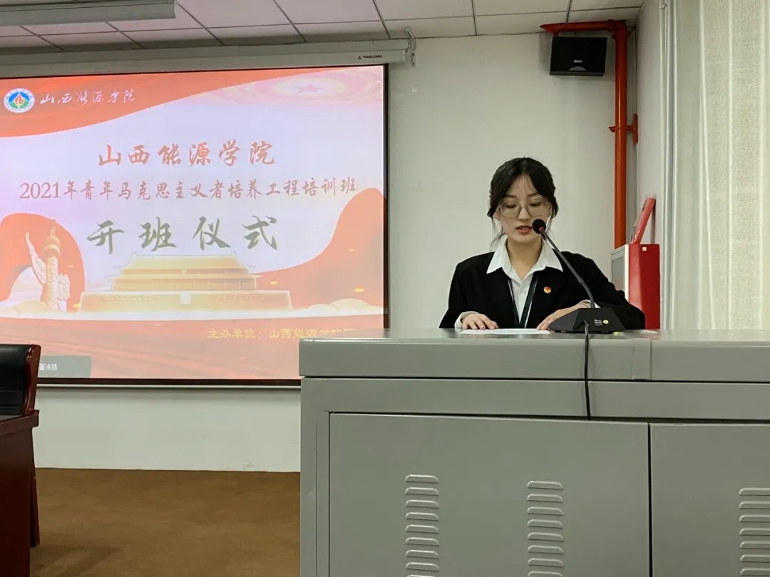 4月13日下午,我院2021年青年马克思主义者培养工程培训班开班仪式在综合楼一层东报告厅隆重举行。院党委副书记张春有、党委委员组织部部长韩树霞、党委委员学生工作部部长辛书贤、思政部负责人张东安及各系部分团委书记、本期培训班老师和全体培训班学员参加了开班仪式。本次开班仪式由院团委书记郑文靖主持。
