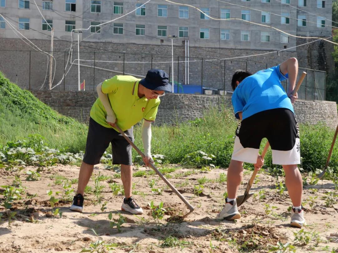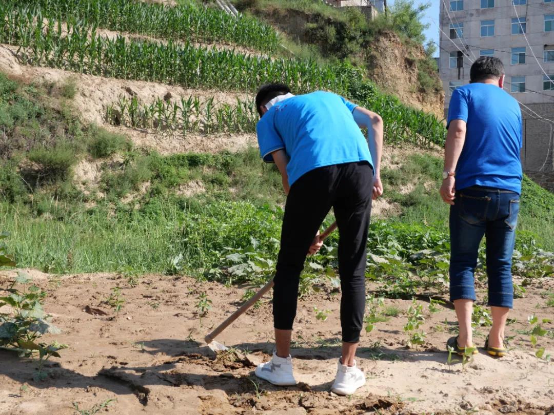 在村民的热情指导下,队员们积极投身劳作,除草、浇水,大家干得热火朝天。虽说三伏天里,天气炎热,但丝毫没有影响队员们劳动的热情。汗水浸湿了衣裳,手上沾满了泥土,大家却越干越有劲,脸上挂着发自肺腑的笑容。