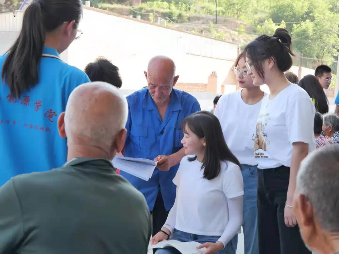 傍晚时分,队员们按照安全小组分组进行了入户走访。队员们找准住址,并向住户说明来意,围绕调查问卷内容,与住户展开聊天式访谈,对当地村民的生活状况,居住环境,家庭情况进行全方位细致了解,同时给当地有需要的村民发放我院的招生简章,努力提高学院在社会的知名度,并积极向村民推广普通话,主动为推普助力乡村振兴贡献力量。