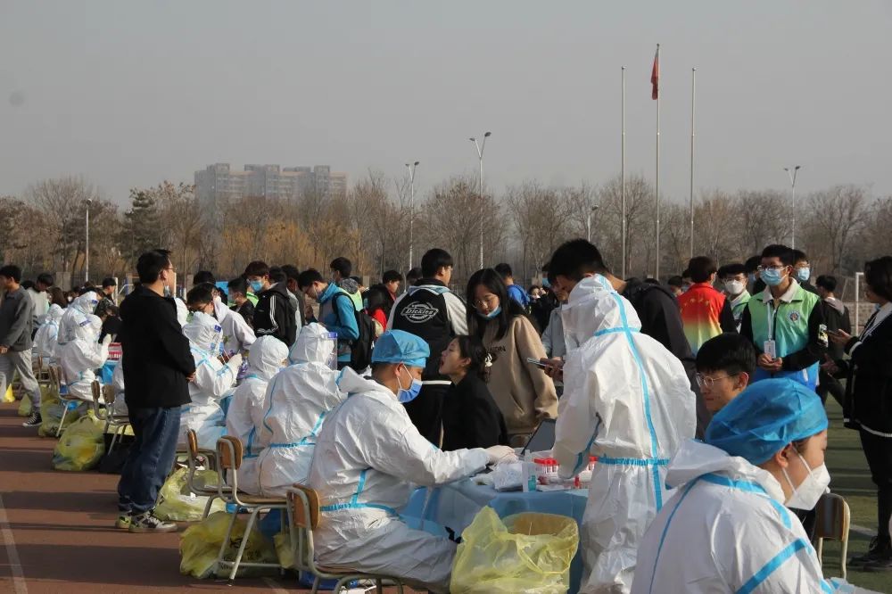 我校学生会志愿者持续助力学院第三次全员核酸检测,操场上处处活跃着志愿者的身影。