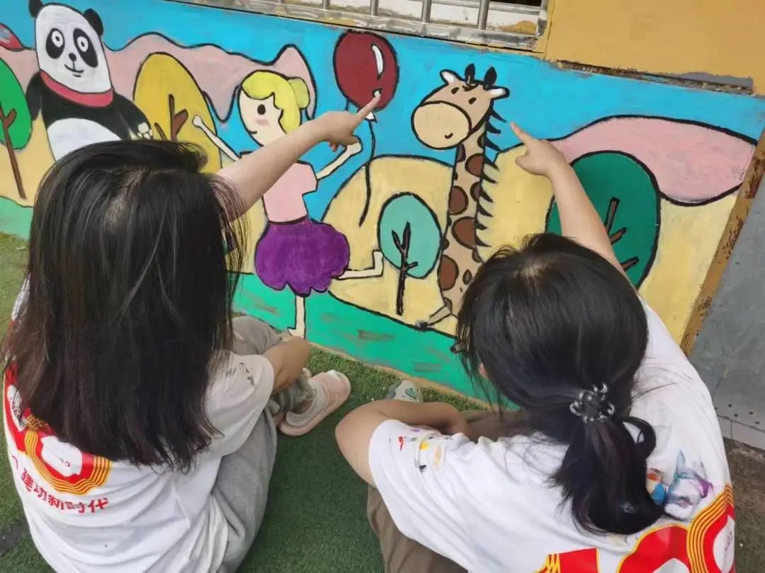 历时3天,经过实践队员们的不懈努力,顺利完成了所有墙绘制作。原本单调乏味、毫不起眼的墙面变得活泼富有生机,村民们纷纷称赞,用心绘制的墙绘获得了他们的一致好评。看着自己绘制的墙绘,给乡村振兴建设增添艺术色彩,队员们的成就感也油然而生。