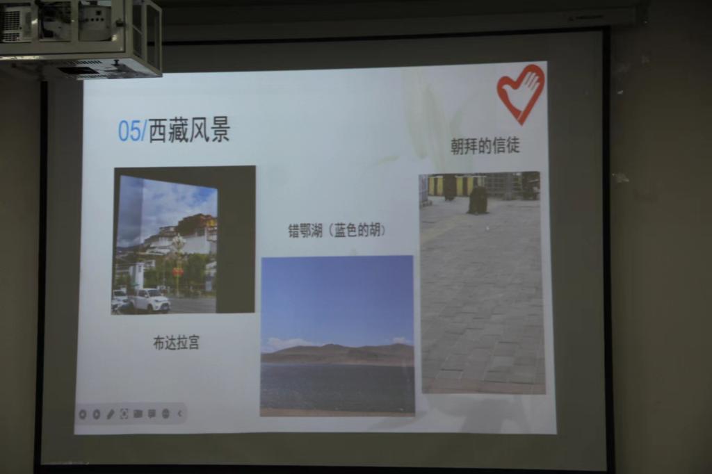 随后,目前服务于西藏的我校2022年西部计划志愿者付珂怡针分享了西部志愿服务经历,服务期间她投身西部,用纸笔记录文明点滴,用脚步丈量祖国大好河山。