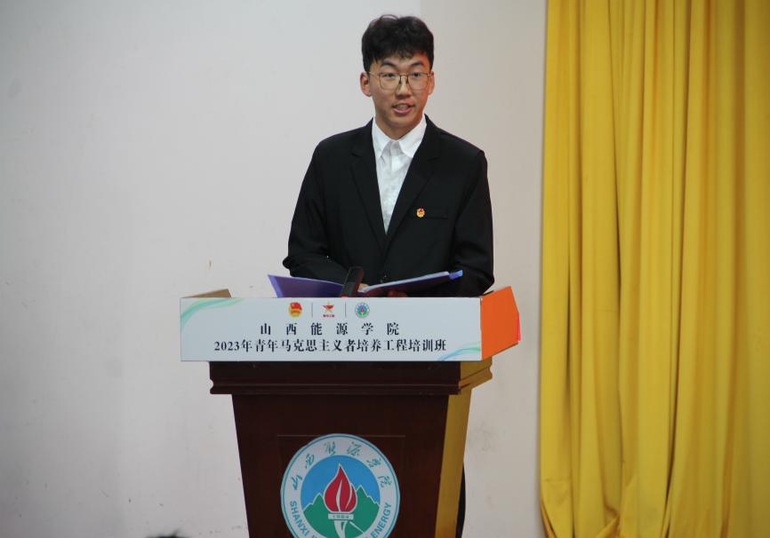 学员代表李浩然作表态发言:作为一名“青马工程”学员,我们将牢记习近平总书记的殷殷嘱托,自觉加强政治历练,锤炼过硬本领,锤炼品德修为,志存高远,脚踏实地,认真学习,努力成为一名合格的青年马克思主义者。