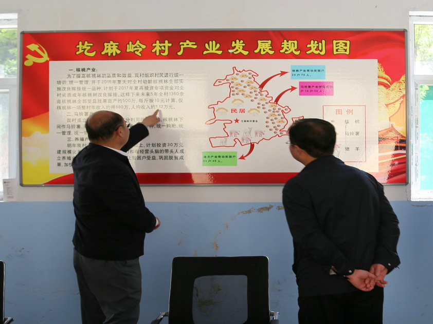 党委书记董峰(右)、院长常建忠(左)在柳黄沟村开展帮扶工作